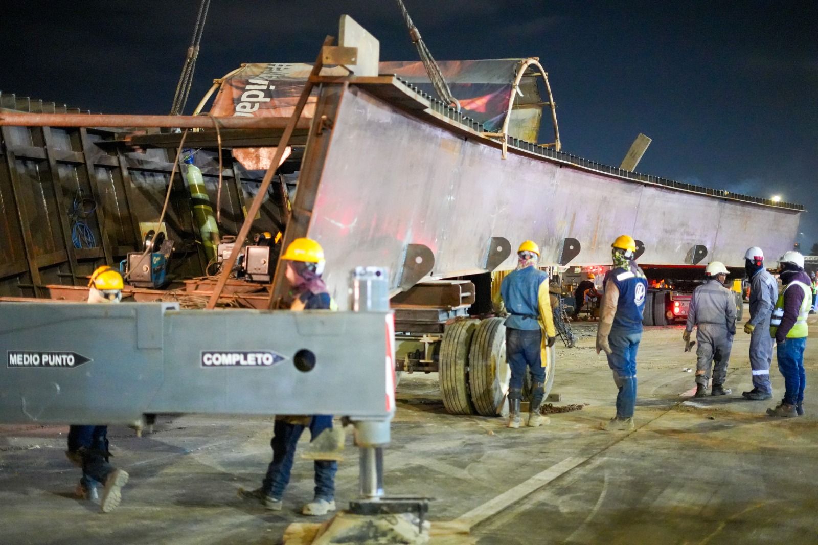 Con el izaje de 2 vigas rectas y una viga curva, finaliza la instalación de las 15 secciones necesarias para la construcción del puente de Venecia, en la autopista Sur.