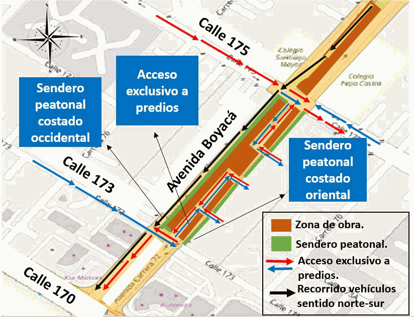 El ingreso y salida de volquetas se realizará por los broches autorizados por la Secretaría Distrital de Movilidad por la avenida Boyacá entre calles 173 y 175.